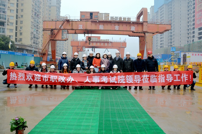 1月16日下午14:30,武漢市人事考試院副院長郭艷、朱江等一行來到武漢市軌道交通5號(hào)線工程第七標(biāo)段進(jìn)行現(xiàn)場調(diào)研,漢陽市政集團(tuán)公司黨委副書記陳穎、副總經(jīng)理邢榮斌等人陪同調(diào)研。