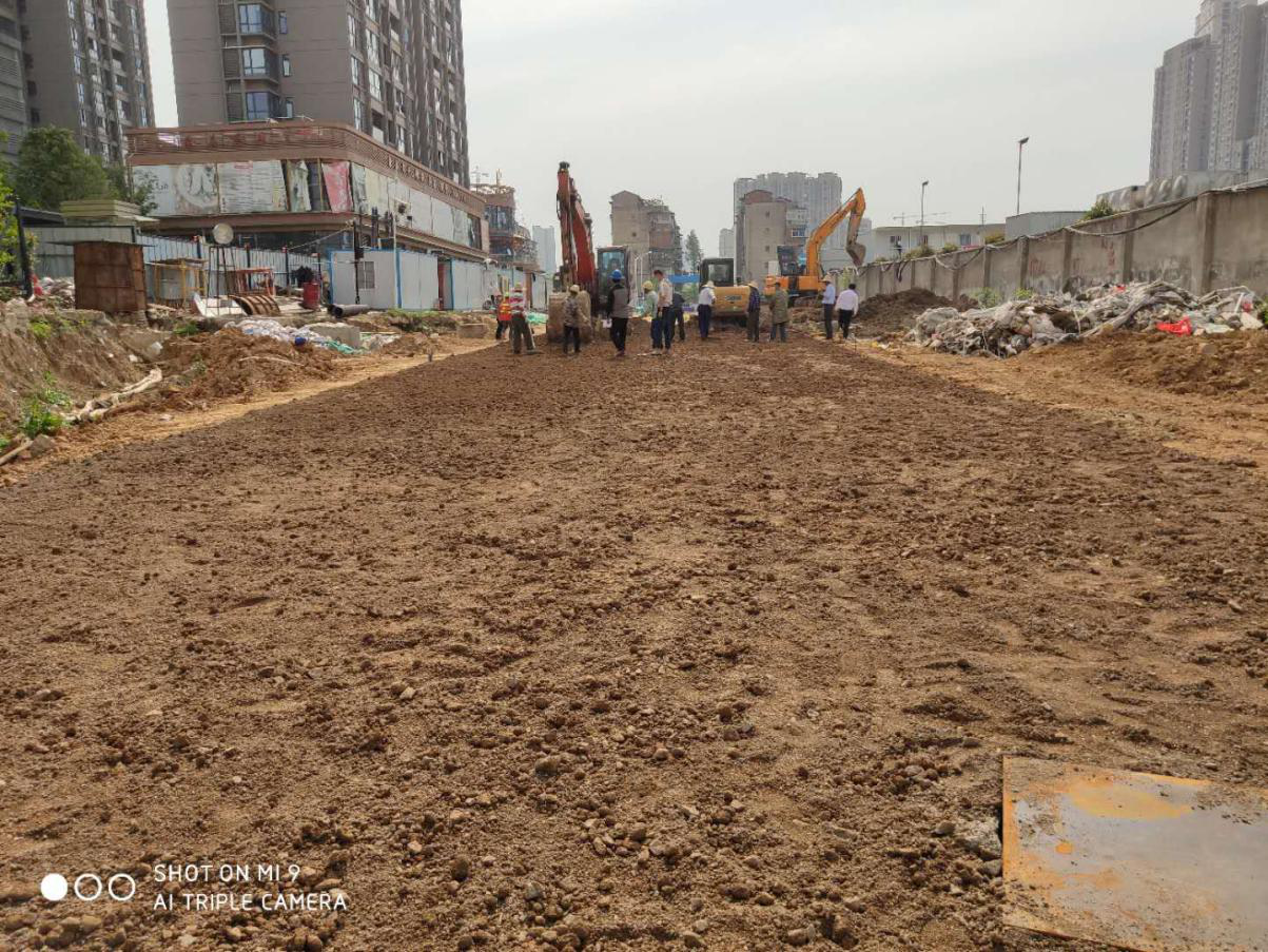 馮家畈道路工程西起龍陽(yáng)大道,東至十升小路。設(shè)計(jì)道路全長(zhǎng)約295米,寬20m。漢陽(yáng)市政鐘鑫公司自4月8日開始進(jìn)入現(xiàn)場(chǎng)施工,共投入管理人員9人、工人15人、3臺(tái)挖機(jī)、一臺(tái)12噸鋼筒壓路機(jī)及其它輔助設(shè)備。在公司領(lǐng)導(dǎo)及項(xiàng)目經(jīng)理的指導(dǎo)下,項(xiàng)目部全體人員經(jīng)過不懈的努力,合理安排施工作業(yè)任務(wù),于4月15日完成了馮家畈路現(xiàn)有路段路床整平壓實(shí)工作,4月26日,完成了馮家畈道路工程水穩(wěn)攤鋪工作,已達(dá)到約一半的工程施工總量。因該工程有在建地下通道,需通道完工后方可進(jìn)行通道上部的排水及道路工程,通道開工日期暫定。