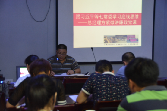 3月29日下午,方紫微總經(jīng)理為支部黨員同志們講了一堂名為《跟習(xí)近平等七常委學(xué)習(xí)底線(xiàn)思維》的廉政黨課。支部書(shū)記涂軼銘主持。