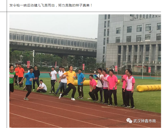 ? ?2019年4月30日,值五四青年節(jié)來臨之際,為激發(fā)職工運(yùn)動(dòng)熱情,展現(xiàn)市政青年昂揚(yáng)向上的精神風(fēng)貌,漢陽(yáng)市政集團(tuán)公司在漢陽(yáng)區(qū)全民健身中心田徑場(chǎng)成功舉辦了“喜迎軍運(yùn)會(huì) ?激揚(yáng)青春 ?職工運(yùn)動(dòng)會(huì)”。