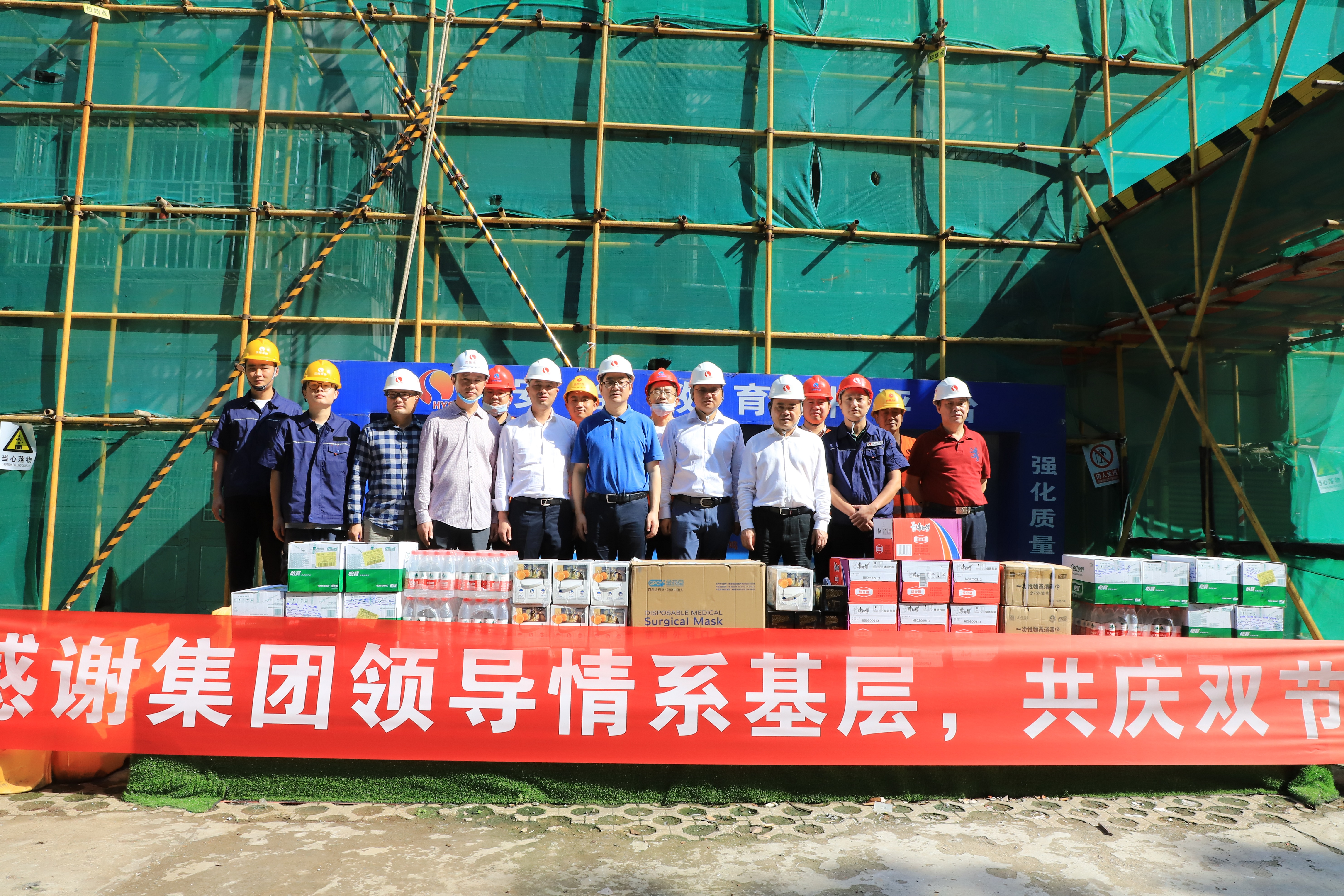 2020年10月1日,集團(tuán)黨委書記、董事長嚴(yán)悌文領(lǐng)導(dǎo)班子成員一行前往鐘鑫公司承建的芳草園老舊小區(qū)改造工程項目進(jìn)行視察,并對雙節(jié)之際堅守崗位的一線員工表達(dá)深切慰問。鐘鑫公司黨支部書記、董事長陳俊俊,黨支部副書記、總經(jīng)理盧永紅等人陪同。