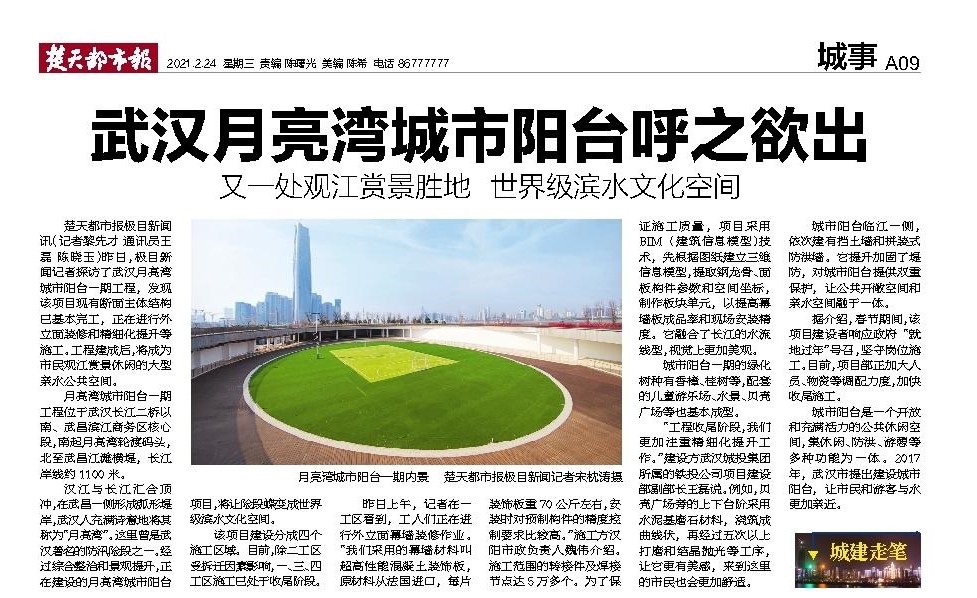 月亮灣城市陽臺(一期)施工項目位于武漢長江二橋以南、武昌濱江商務(wù)區(qū)核心段,南起月亮灣輪渡碼頭,北至武昌江灘橫堤,整體包含四個工區(qū)的建設(shè)任務(wù),目前一、三、四工區(qū)建設(shè)已處于收尾階段,接下來將抓緊進行外立面裝修和精細化提升等工作。