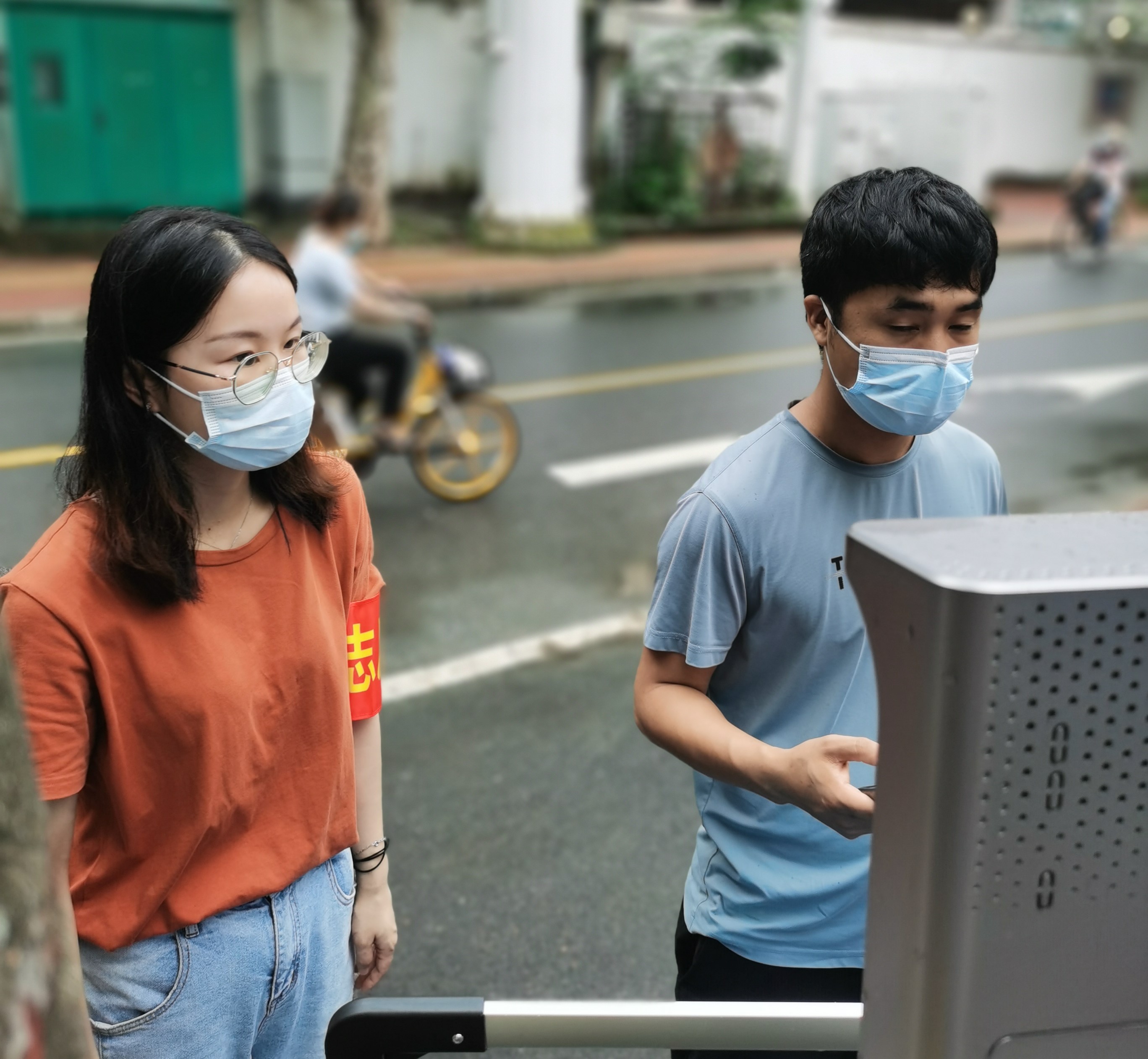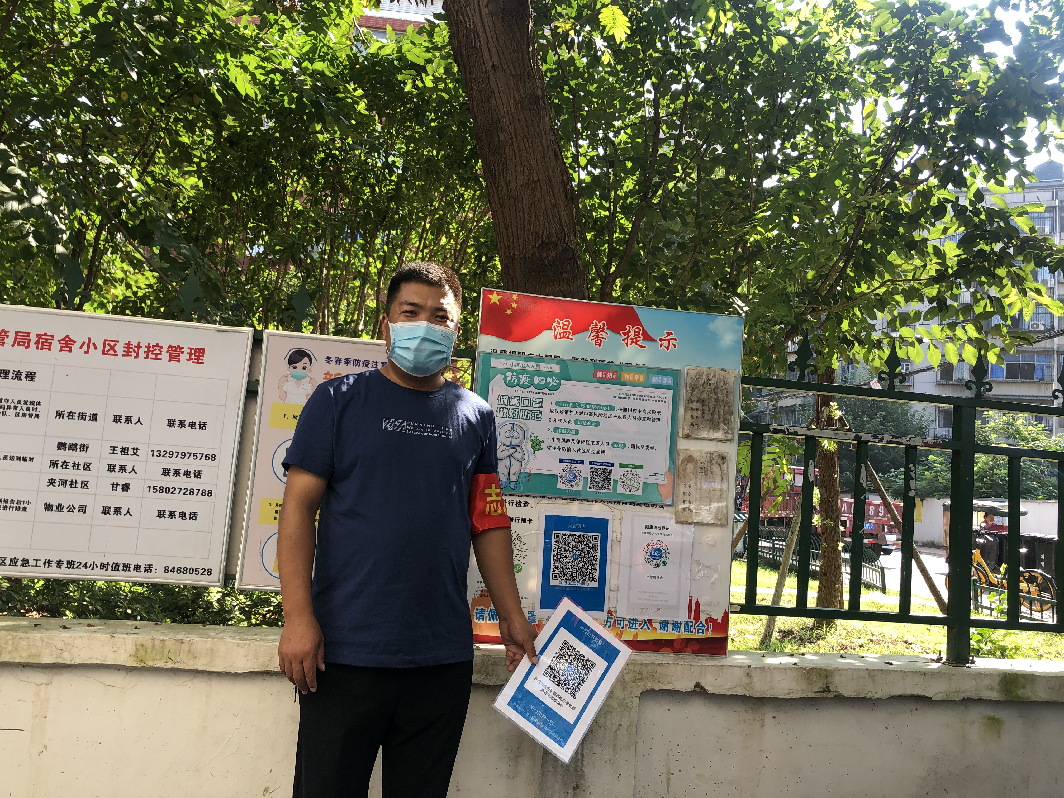 風塵仆仆再戰(zhàn)社區(qū),剛從建設現(xiàn)場回到崗位的黨員李強、楊潔,立刻趕往社區(qū),力求在繁忙的工作之余能夠為社區(qū)貢獻自己力所能及的力量。烈日炎炎下,他們嚴格要求進入小區(qū)的人員必須持健康碼,守好疫情防控的第一道關口。