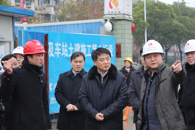 在新春的第一個工作日,區(qū)委書記曹裕江心系漢陽區(qū)第一條地鐵線路——武漢市軌道交通四號線二期工地現(xiàn)場施工情況,冒著雨雪交加、寒風凜冽,率隊蒞臨四號線二期八標玉龍路地鐵施工現(xiàn)場視察慰問,區(qū)建設局長嚴悌文、集體公司胡紅勝董事長陪同視察。視察中,曹裕江書記詳細詢問了工程建設情況,充分肯定了現(xiàn)場管理人員在惡劣天氣環(huán)境下仍堅守崗位,并表示希望現(xiàn)場施工人員在新的一年里繼續(xù)努力,為武漢軌道交通的建設貢獻自己的一份力量。