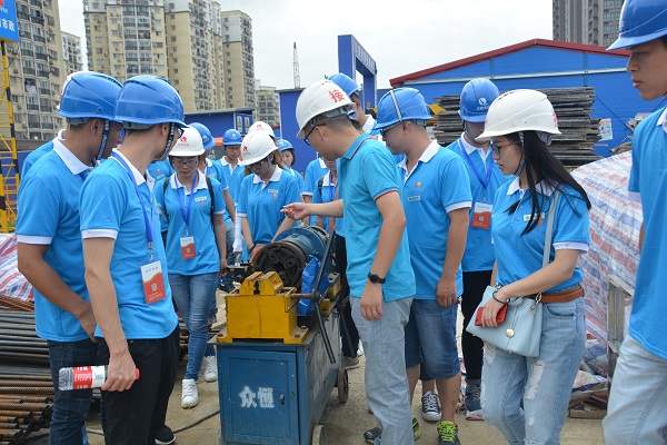 立足崗位,傳道授業(yè)。為了讓各位新員工對于公司的實(shí)體業(yè)務(wù)有一個直觀清晰的認(rèn)識,培訓(xùn)第二天上午,公司的項目經(jīng)理張平和技術(shù)負(fù)責(zé)人劉道俊帶領(lǐng)新員工們參觀學(xué)習(xí)了公司在建的最大的地鐵5.7標(biāo)項目,讓他們直觀的感受地鐵施工現(xiàn)場。由于之前很少有機(jī)會能夠看見地鐵完工前的景象,大家都仔細(xì)觀摩,積極提問。技術(shù)負(fù)責(zé)人劉道俊還帶領(lǐng)大家來到工地上的安全體驗區(qū),并仔細(xì)地給新員工講解了工地上各項安全工具器械的使用以及在以后的工作中如何增強(qiáng)質(zhì)量意識、安全意識。大家見到安全體驗區(qū)都興致高漲,紛紛體驗安全區(qū)的各項器材,現(xiàn)場氣氛非?;钴S。