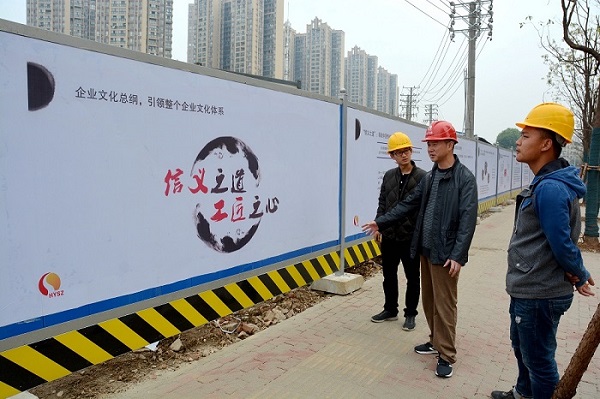 近兩周以來,漢陽市政鐘鑫公司精心推選出了企業(yè)文化宣傳大使在各職能部門、各項目一線進行企業(yè)文化成果宣傳貫徹。公司后勤部門精心制作懸掛了企業(yè)文化宣傳展板,并將成熟完善的企業(yè)文化體系PPT不間斷的在公司電子顯示屏上進行展示,讓企業(yè)文化得到更好地普及。此外,鐘鑫公司八項目部更是在項目圍擋上精心制作了企業(yè)文化墻,鐘鑫公司總經(jīng)理、企業(yè)文化落地小組副組長盧永紅深入現(xiàn)場對項目一線職工進行了全方位、多層次的企業(yè)文化講授解讀,讓企業(yè)文化成果真正的深入人心,外化于行,全力助推企業(yè)文化落地一線!
