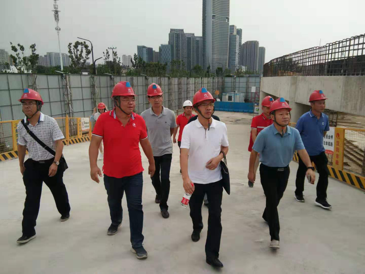 2019年9月25日下午,湖北省質(zhì)監(jiān)總站副站長(zhǎng)董文斌、武漢市質(zhì)監(jiān)站副站長(zhǎng)唐傳政一行來到漢陽市政月亮灣城市陽臺(tái)工程(一期)施工項(xiàng)目檢查現(xiàn)場(chǎng)質(zhì)量安全觀摩會(huì)籌備工作,漢陽市政集團(tuán)公司總工程師荊武、四公司總經(jīng)理盧永紅等陪同。