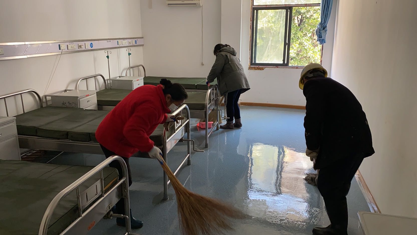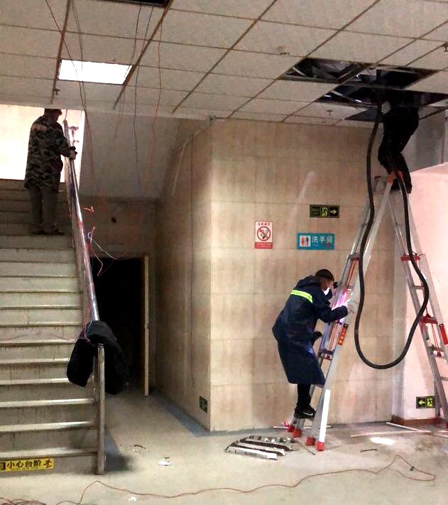 因蓮花湖醫(yī)院閑置已久,現(xiàn)場雜物零亂、灰漬累積,進(jìn)行全院大清理是搶建的首要工作,經(jīng)過日夜通宵奮戰(zhàn),在250余名勞務(wù)隊(duì)員辛勤的勞作下,16日清晨順利完成整個(gè)院區(qū)雜物清除、現(xiàn)場清洗等任務(wù);技術(shù)設(shè)計(jì)亦是爭分奪秒,技術(shù)人員連夜與設(shè)計(jì)單位進(jìn)行反復(fù)溝通確認(rèn),結(jié)合現(xiàn)場實(shí)際情況結(jié)合一次又一次地反饋修改,重新規(guī)劃布局醫(yī)院隔離病房設(shè)計(jì),為搶建任務(wù)爭取了寶貴時(shí)間;因閑置過久,醫(yī)院已斷水?dāng)嚯?,通水通電成為擺在建設(shè)人員急需解決的最大困難,時(shí)不可待,通過重新規(guī)劃水電路線,在管理人員有序的組織下,現(xiàn)場水電工晝夜搶建,目前已基本實(shí)現(xiàn)水電全通;隨著隔離板材等物資陸續(xù)到場,后續(xù)隔離病房搭建正緊張有序展開,力爭于16日晚圓滿完成任務(wù)。