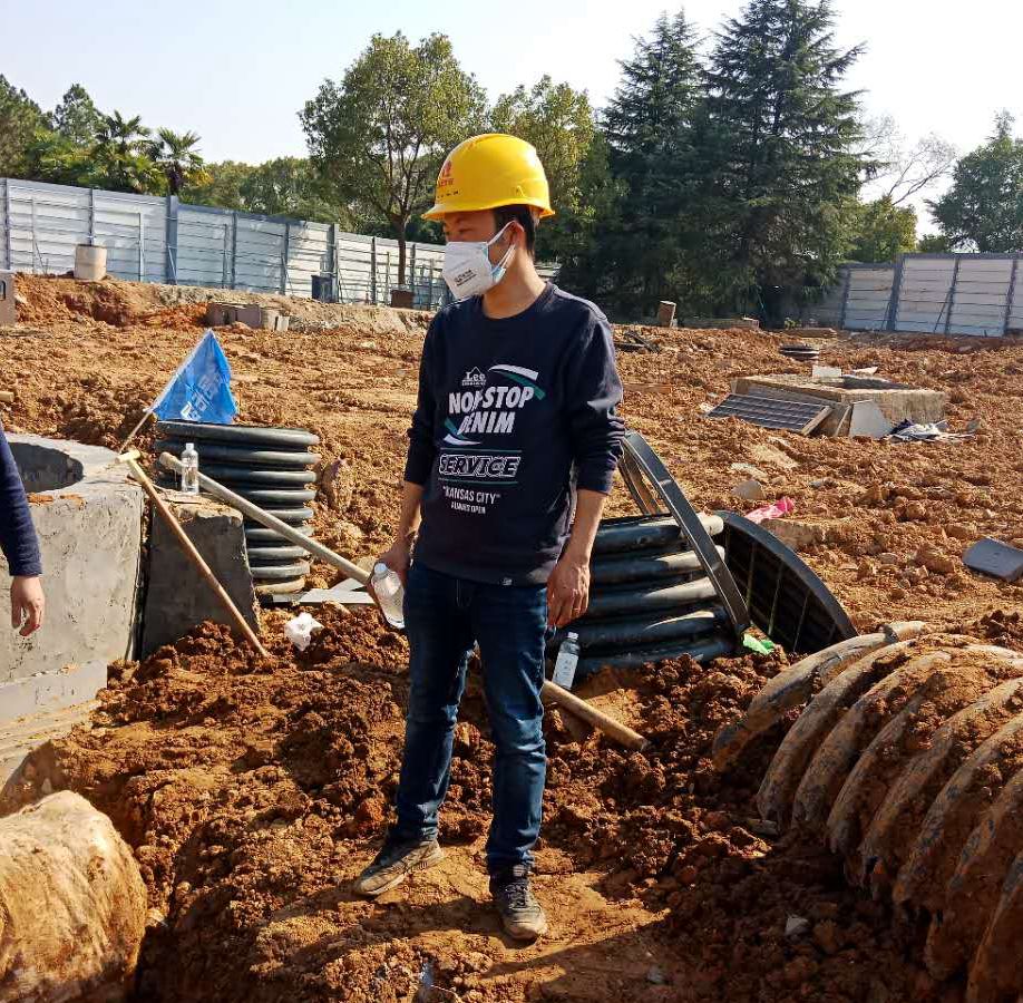 在火神山現(xiàn)場(chǎng),他主要負(fù)責(zé)土方施工、強(qiáng)弱電施工以及后勤保障管理工作?,F(xiàn)場(chǎng)施工時(shí)間緊,任務(wù)量大,交叉作業(yè)多,協(xié)調(diào)量大,當(dāng)被問到:“在這種情況下,是如何完成現(xiàn)場(chǎng)土方施工4萬方,強(qiáng)弱電管道施工2900米,防滲膜施工2.5萬平米時(shí)”,略帶靦腆的李衛(wèi)民說到:“這都是大家齊心協(xié)力的結(jié)果,一個(gè)人的力量有限,但我們擰成一捆繩,就沒有什么困難能難倒我們”。雖然現(xiàn)場(chǎng)困難多,但最讓他揪心的莫過于隊(duì)員們的安全問題,他說:“這次籌建是上級(jí)交給我們的“考試”,只有隊(duì)員們都安全,我們才能順利“交卷””,項(xiàng)目現(xiàn)場(chǎng),他時(shí)刻做好工人們的心理疏導(dǎo),引導(dǎo)他們克服困難,時(shí)刻提醒他們消毒、佩戴口罩,保障他們的后勤需要,“只有這樣,我們才能按時(shí)保質(zhì)保量完成任務(wù)?!彪m然項(xiàng)目現(xiàn)場(chǎng)施工實(shí)行24小時(shí)兩班倒,連續(xù)作業(yè),但為保障施工順利進(jìn)行,他連續(xù)三天沒有休息過,實(shí)在困了,就隨地趴一下,醒了,又繼續(xù)奮斗。他說:“疫情不等人,我們只有爭(zhēng)分奪秒,和病毒賽跑,和時(shí)間賽跑,跑到他們前面,我們才能贏。”