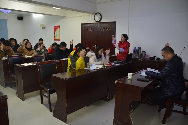 會議伊始,由涂軼銘書記通報到會情況,帶領大家高唱國歌,然后舉起右拳,重溫入黨誓詞;接著帶領大家學習《中共中央發(fā)出通知:部署黨的十九大代表選舉工作》、“九嚴禁”“九必須”換屆紀律以及市委關于推薦提名湖北省出席黨的十九大代表候選人工作有關精神的傳達學習,以深化支部對換屆紀律的認識,著力營造風清氣正的選舉風氣。在代表候選人推選環(huán)節(jié),黨員們積極行使選舉權利,紛紛舉手推薦人選,最后通過舉手表決的方式,推選出代表候選人人選?;顒幼詈螅繒浲▓罅斯?2月工程建設情況,向黨小組下發(fā)并帶領學習2017年第一期《鑫聲》期刊,對一年來的工作進行總結。