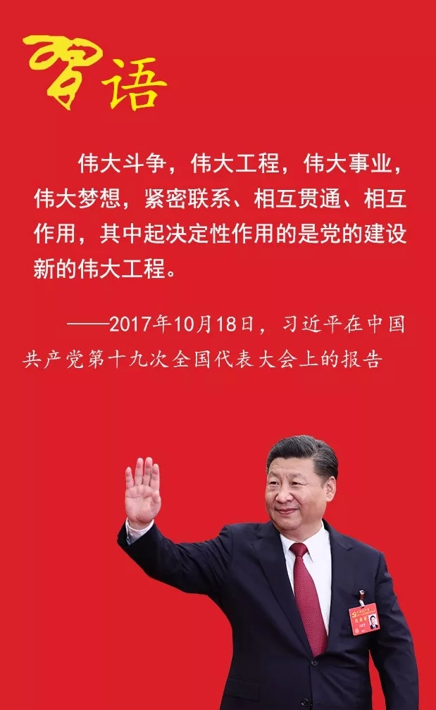 習(xí)近平在十九大報(bào)告中指出,“偉大斗爭(zhēng),偉大工程,偉大事業(yè),偉大夢(mèng)想,緊密聯(lián)系、相互貫通、相互作用,其中起決定性作用的是黨的建設(shè)新的偉大工程”。