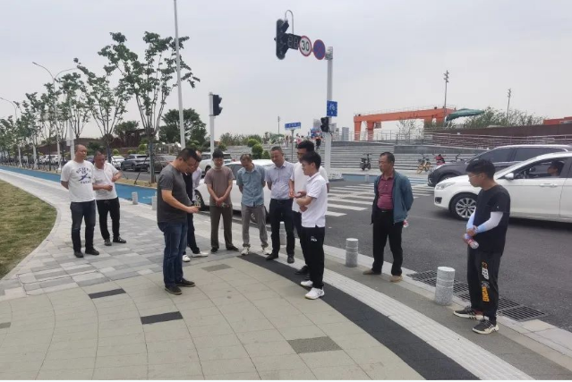 觀摩現(xiàn)場(chǎng),講解員對(duì)新五里后堤項(xiàng)目進(jìn)行了詳細(xì)介紹,重點(diǎn)講述了該項(xiàng)目在標(biāo)準(zhǔn)化、精細(xì)化、人性化等方面的創(chuàng)新做法。觀摩單位在現(xiàn)場(chǎng)實(shí)測(cè)實(shí)量,觀看技術(shù)資料,了解石英砂及膠水的配合比等技術(shù)參數(shù),學(xué)習(xí)新五里后堤項(xiàng)目“0高差”、透水砂基、雨水箅子截污籃等精細(xì)化施工做法。